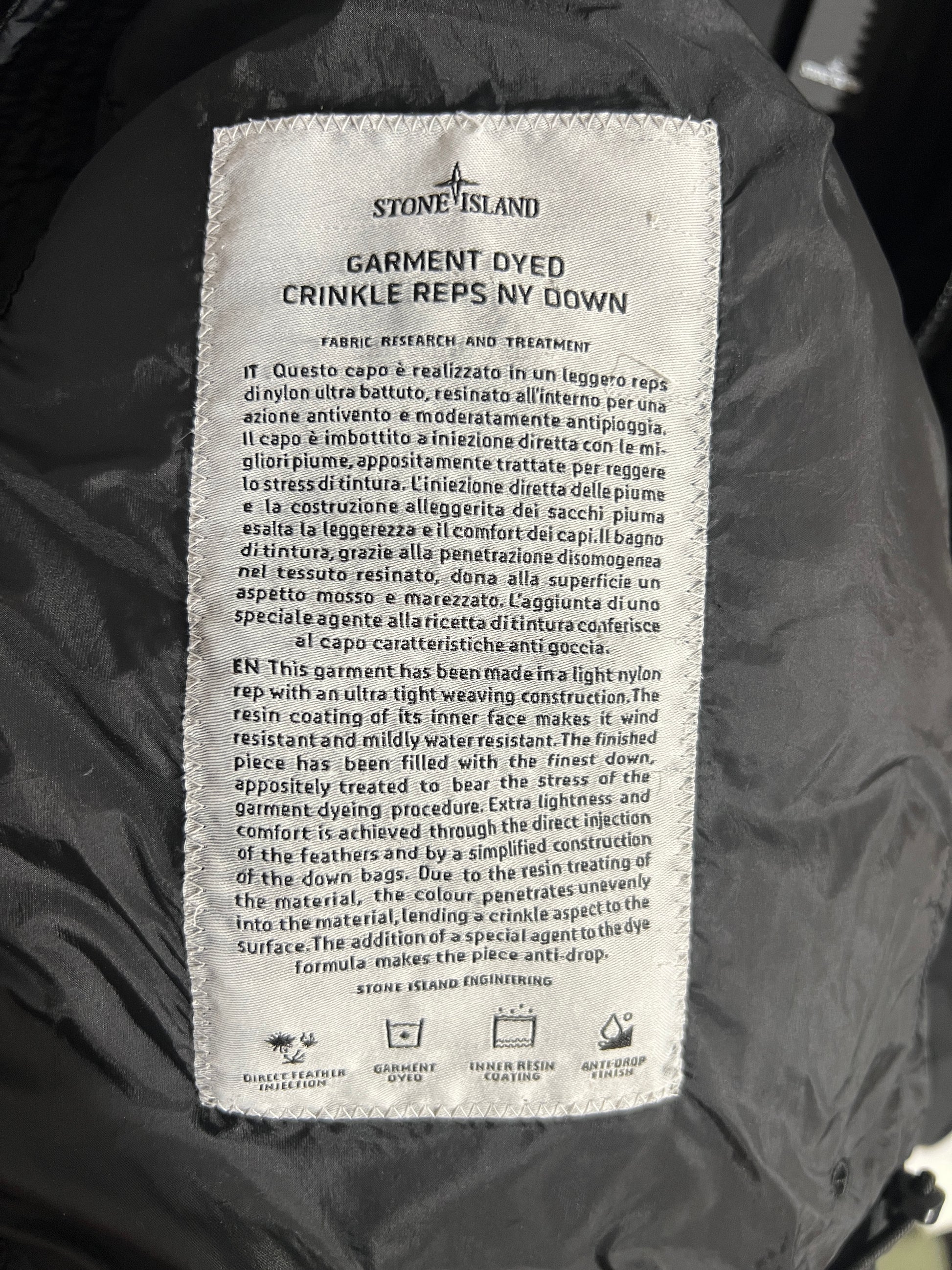 Piumino nero Garment Dyed Crinkle Reps NY Down Stone Island - Taglia S