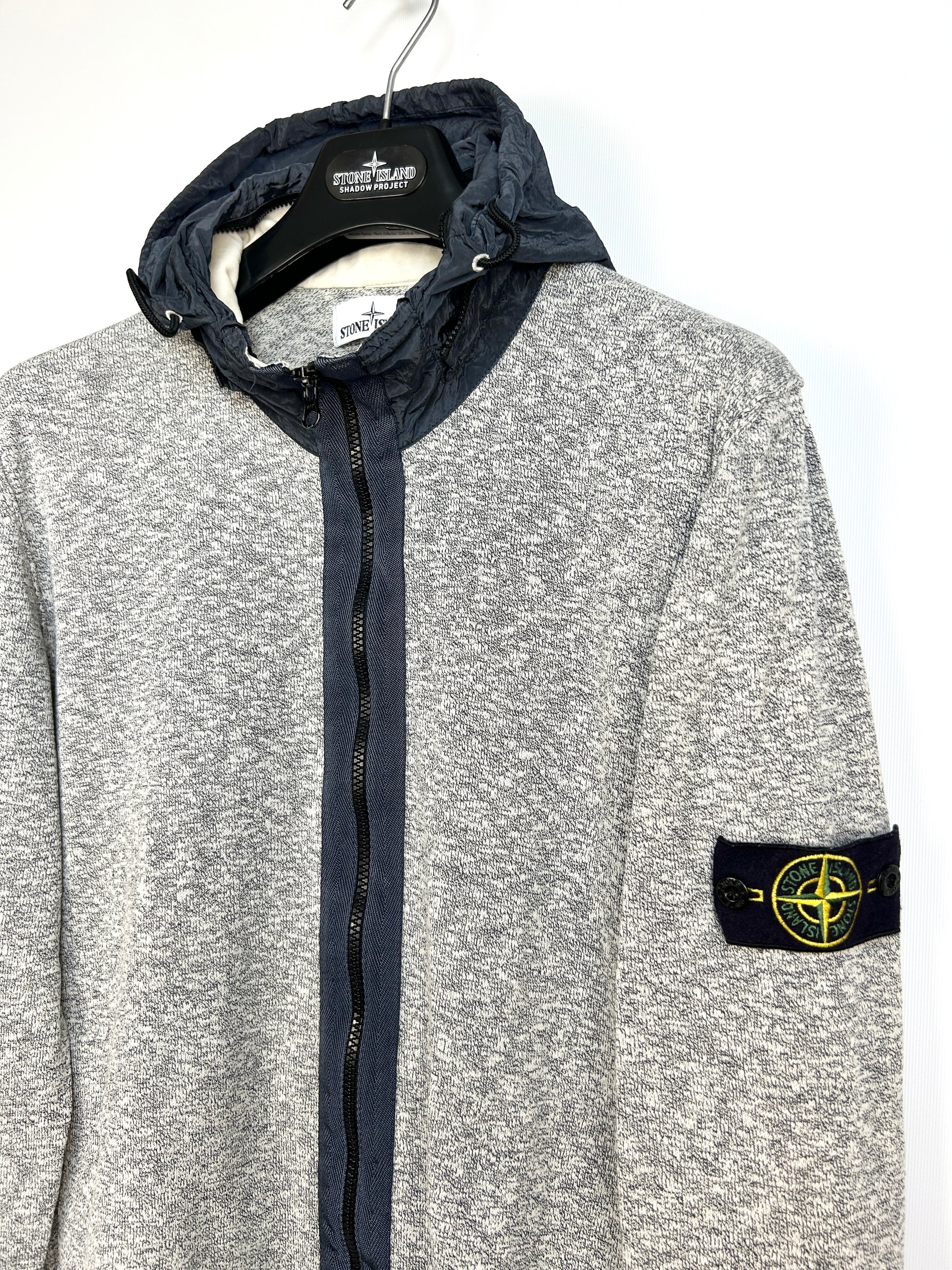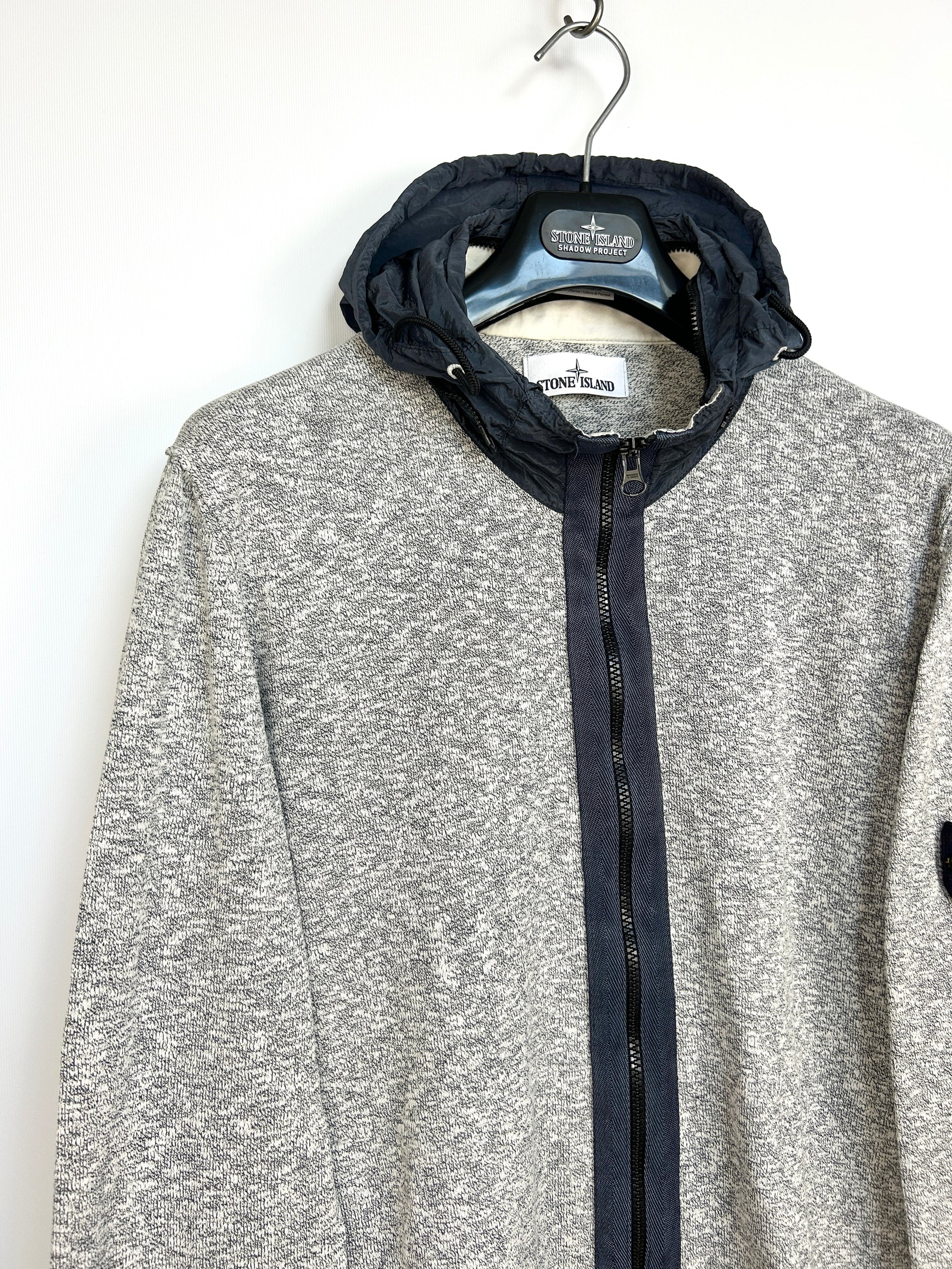 Felpa in maglia grigia con zip e cappuccio Stone Island - Taglia XXL